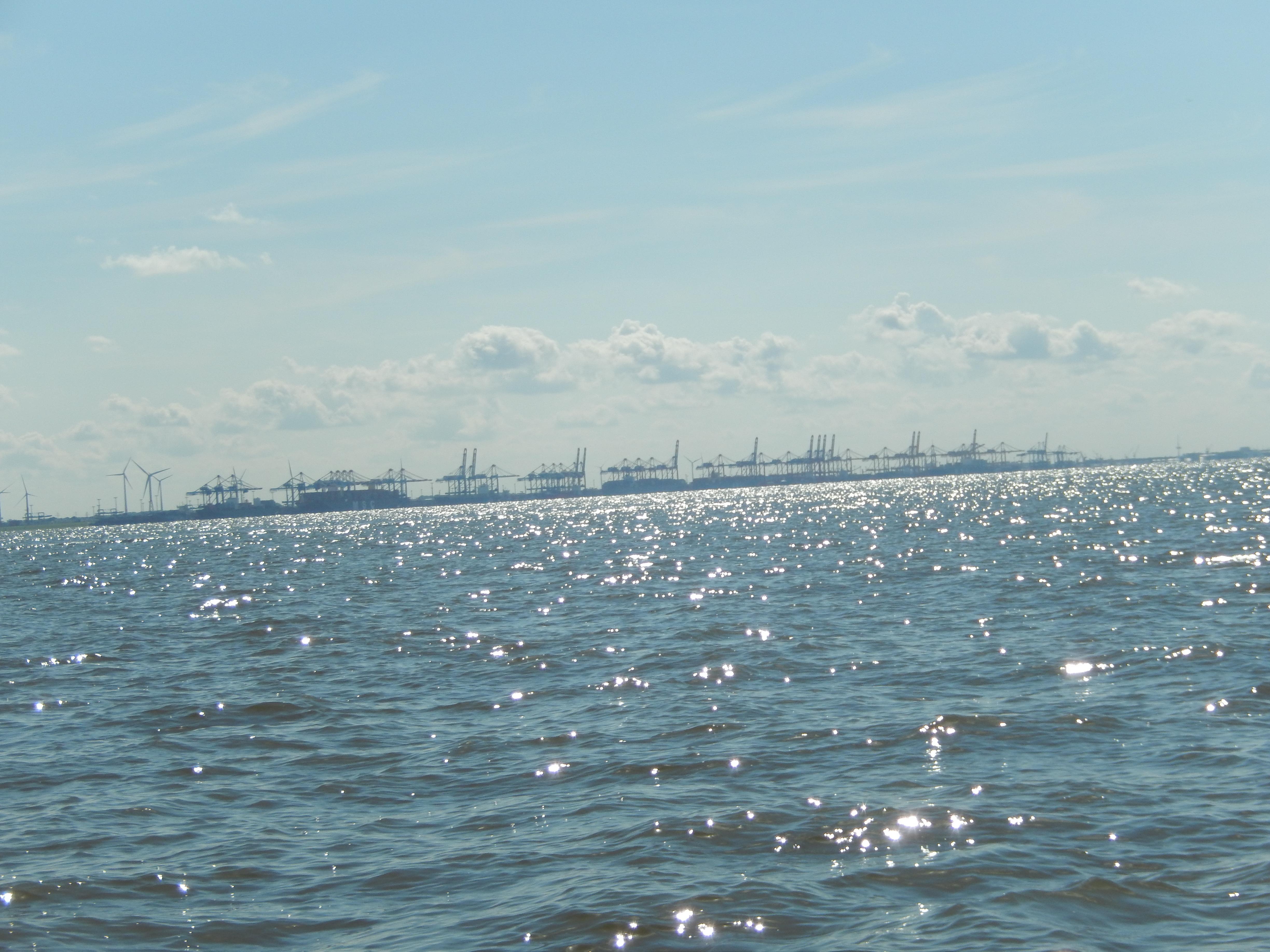 Bremerhaven kann man dank des schönen Wetters schon von weitem sehen.