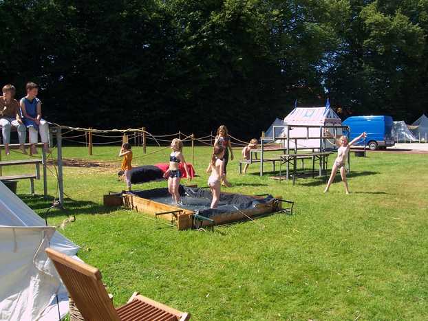 Am Montag, als keine offizielle Veranstaltung mehr war, hatten wir ein Planschbecken improvisiert: Vier Bierbänke, eine Plane und der Schlauch von der Pferdetränke der Turnierpferde.