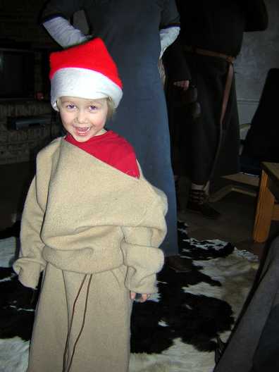 Leon in Gewandung... und Weihnachtsmütze.