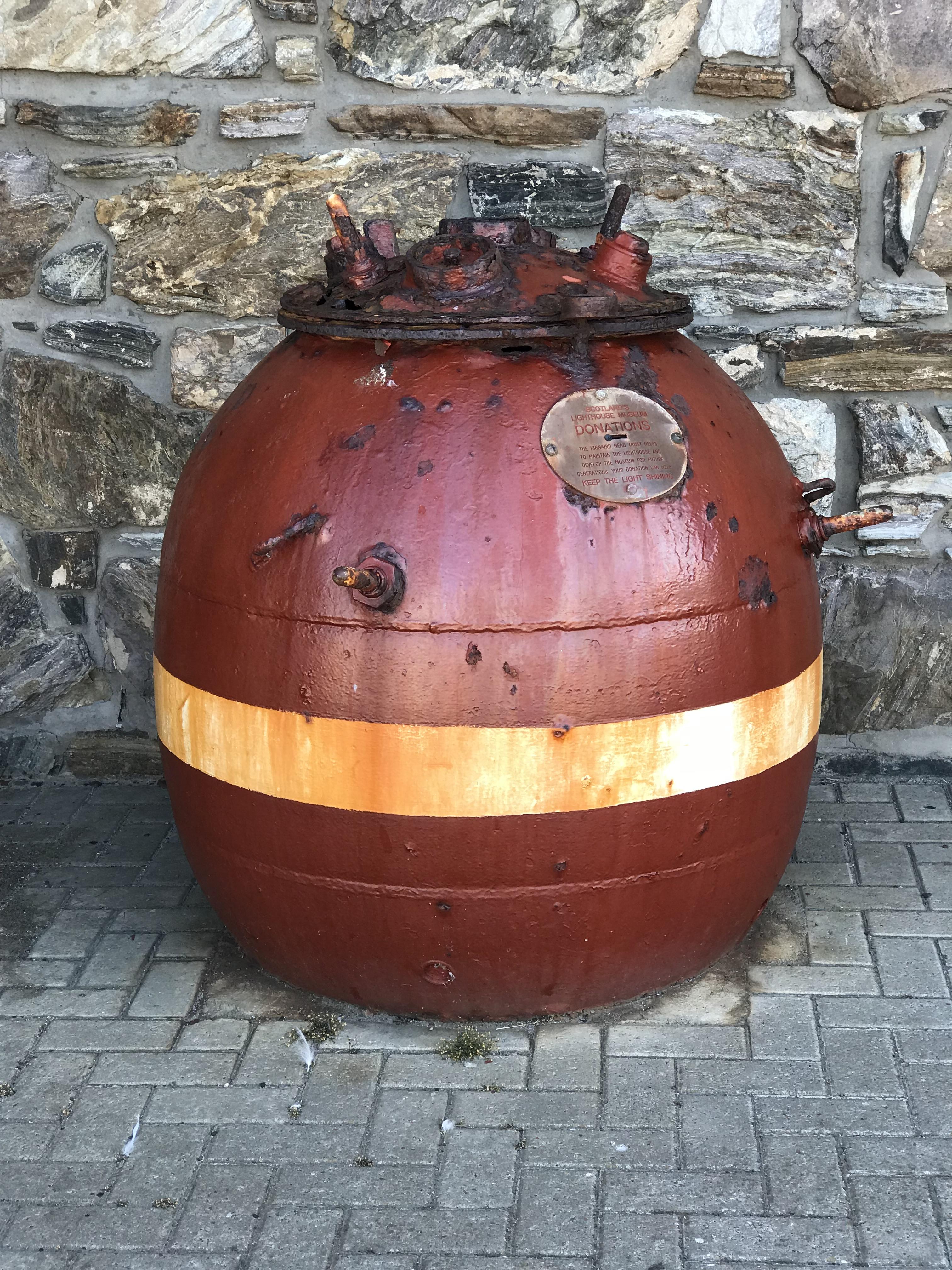 Gleich neben dem Eingang eine Seemine als Spenden-Box.